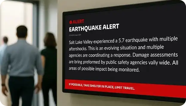 Send urgent alerts to every screen instantly using built-in triggers connected to your existing safety systems.